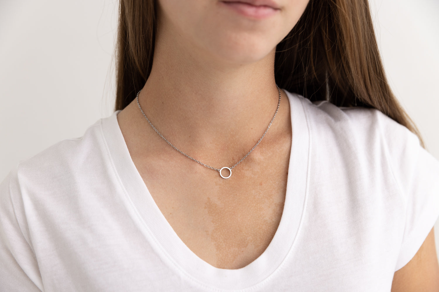 This Circle necklace is both simple and soft and can be worn as a companion to our matching earrings or as a stand-alone piece. A circle’s symbolism is a constant reminder of your femininity and value, and this staple piece is sure to bring that timeless feeling into your daily life.